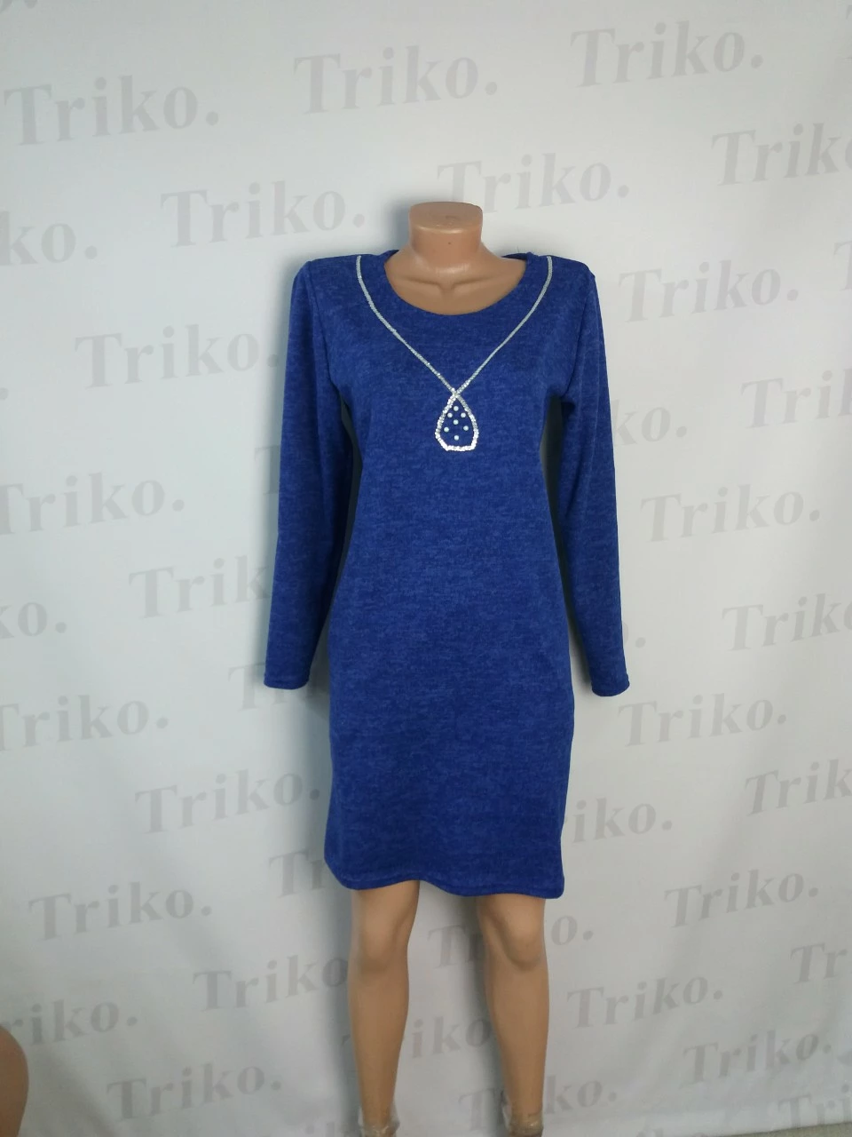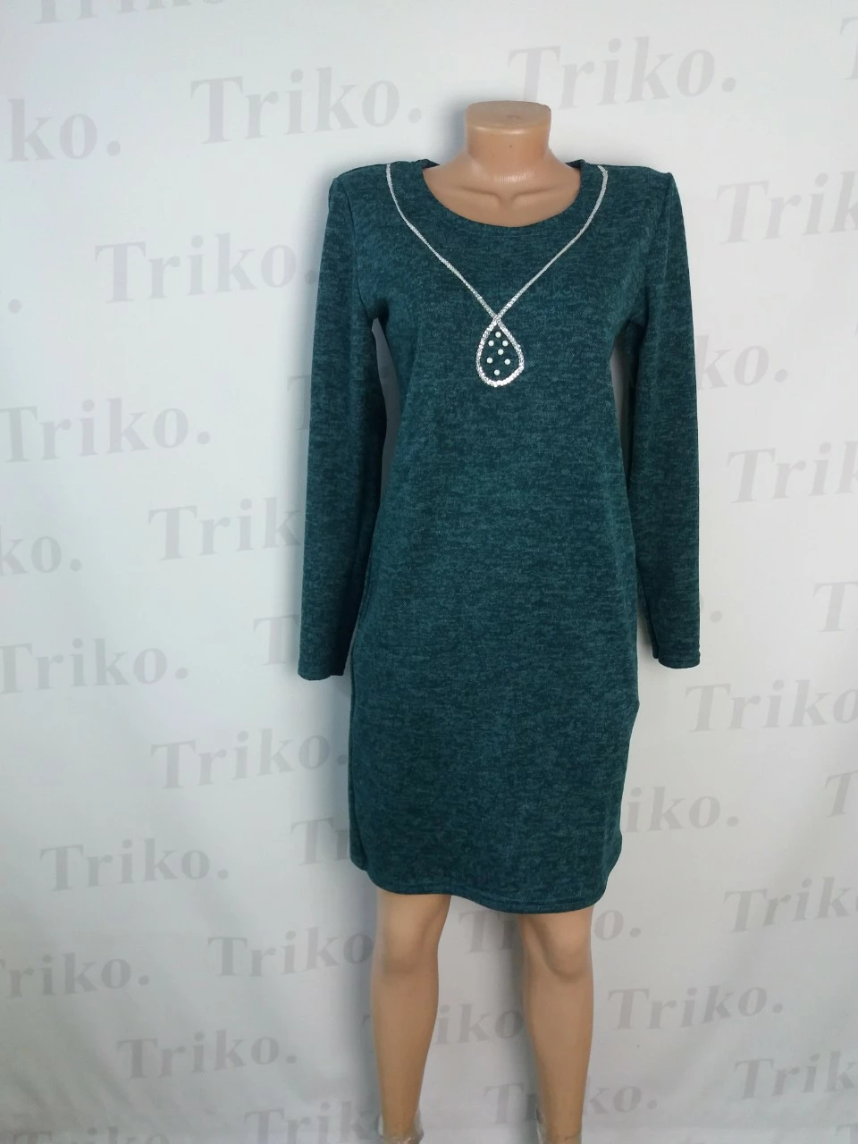 Платье украшено поетками и бусинками,имеются карманы.Обладает высокой прочностью, мягкая ,тёплая ,гипоалергенная ,ростяжимость отличная ,не садится .Состав:97%полиэстер ,3%эластан . Р.44-46,48-50,52-54,56-58